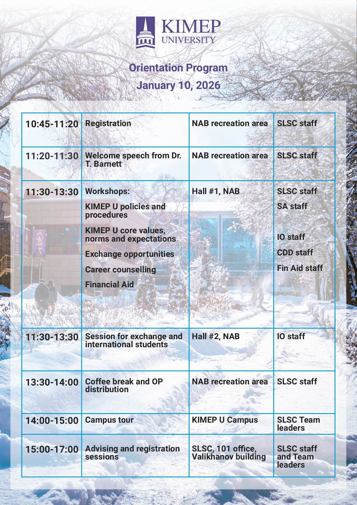 Email: ibrayemova@kimep.kz; advising@kimep.kz